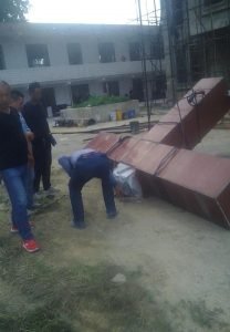 Bitter Winter has learned that, on April 28, 2018, the Long’an District Government in Anyang, Henan, used a crane to demolish the cross of Shenjiagang Church, which was still under construction.