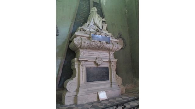 Monumento funebre a Dom Calmet nella chiesa Saint-Pierre Saint-Goudelbert a Senones. La tomba originaria fu attaccata e le sue ossa disperse durante la Rivoluzione Francese, ancora una conseguenza della falsa presentazione del benedettino come prototipo del monaco credulone e reazionario da parte di Voltaire. Credits.
